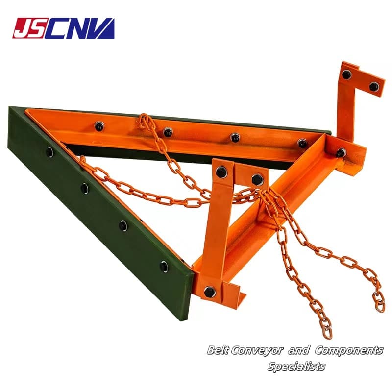 V-Plow ベルトクリーナーはリターン式ベルトクリーナーの一種です。主にベルトコンベアのコンベアベンドプーリー前や重量縦張装置の前に使用されます。耐酸性、耐アルカリ性、難燃性、帯電防止性、耐摩耗性が高く、ベルトを傷めない特性を持っています。ブレードは高強度ポリウレタン製で、V 字型デザインによりベルトの清潔さが保証され、自動重力設計によりブレードが摩耗した場合に自動的に補正されます。